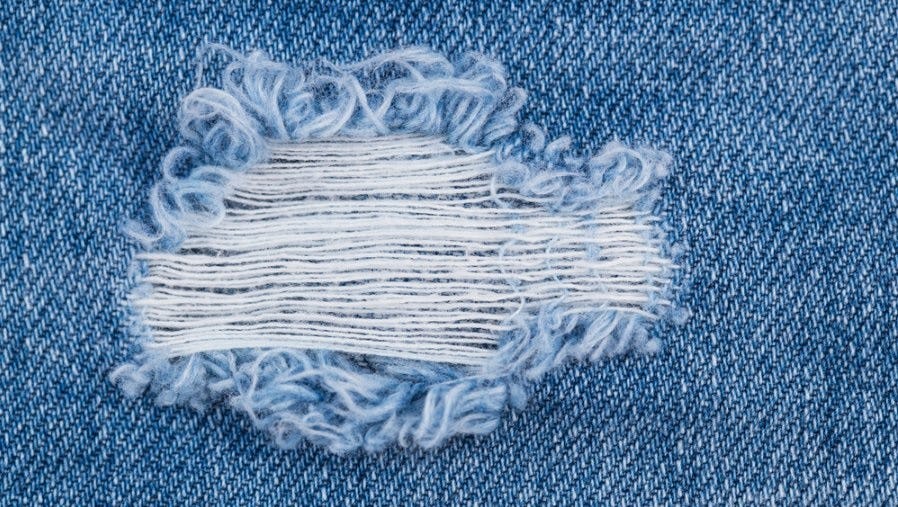 Ik zoek een nieuwe spijkerbroek. Zonder gaten, zonder slijtplekken en niet vaal. Gewoon egaal blauw. Helaas blijkt zo'n kledingstuk online en offline nergens te vinden.